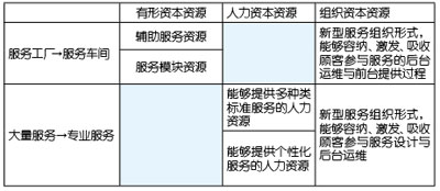 本質(zhì)上講,電信服務(wù)產(chǎn)品的四類服務(wù)都是在此二維機(jī)理的作用下生成的,服務(wù)的內(nèi)容映射著企業(yè)的有形資本資源和人力資本資源,服務(wù)的過程映射著企業(yè)的組織資本資源,從一種服務(wù)向另一種服務(wù)躍遷,不僅僅是服務(wù)過程和服務(wù)內(nèi)容的重新整合,更重要的是需要彌補(bǔ)相應(yīng)的資源,才能達(dá)到服務(wù)生成的結(jié)果,否則,躍遷就不會(huì)成功。