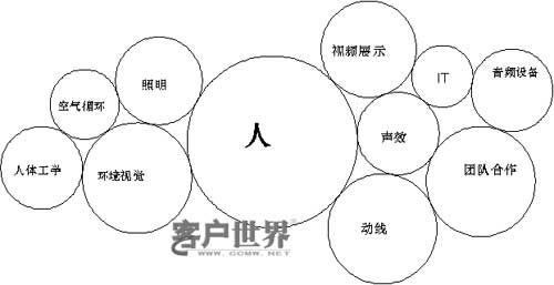 我們“以人為本”的出發(fā)點,相信能夠得到您的認同。但是空間中所包含的元素還是非常的復雜。即使在我們內部編寫的《呼叫中心營建白皮書》中,就呼叫中心空間設計的要點一項,就有15個方面之多,相信以后隨著經驗和需求的變化,還會有所增加。