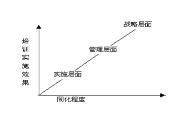 為了確保培訓(xùn)實(shí)施效果能達(dá)到預(yù)期的效果及水平即達(dá)到預(yù)期的認(rèn)識(shí)水平,來自于管理層的執(zhí)行力必不可少,任何一項(xiàng)培訓(xùn)工作如果不能自下而下的進(jìn)行“洗腦”即同化過程,很難保證培訓(xùn)效果。簡言之,我們需要從戰(zhàn)略角度到管理層面直到實(shí)施層面的同化過程。