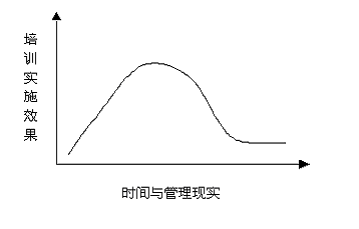 從圖一我們得知,在培訓(xùn)實(shí)施認(rèn)識(shí)之初,企業(yè)對(duì)于培訓(xùn)需求的同化程度越高,培訓(xùn)實(shí)施效果就會(huì)越好,反之若是我們的同化層面只停留在實(shí)施層面,得不到管理層、戰(zhàn)略層的同化支持自然培訓(xùn)效果不能長久,只能達(dá)到一個(gè)短時(shí)間的定向認(rèn)識(shí),隨著時(shí)間與現(xiàn)實(shí)的變化,培訓(xùn)效果則會(huì)一蹶不振。(見圖二)