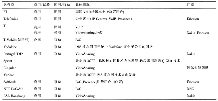 表1 國內(nèi)外運營商IMS應用案例