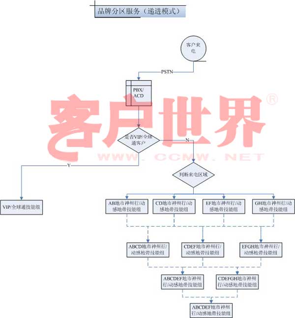 優(yōu)點:在人員利用效率上是三種模式最高的,同時可以通過這種話務(wù)模式充分平衡各地市的電話服務(wù)水平。此外,通過對座席代表技能評估,按照不同服務(wù)技能設(shè)置接聽的來電地市,充分考慮了實際技能和客戶需求的匹配,有利于服務(wù)質(zhì)量的穩(wěn)定提高,同時為員工的職業(yè)發(fā)展創(chuàng)造出一條晉升通道。