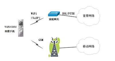 圖2 WiFi/GSM雙模手機(jī)應(yīng)用圖