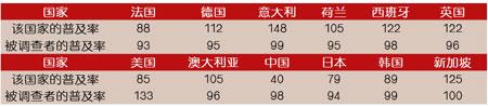 調(diào)查結(jié)果顯示,超過(guò)50%的受訪者會(huì)在家里使用手機(jī)打電話(huà),在中國(guó)和韓國(guó),這一比例甚至高達(dá)90%。在家使用手機(jī)上網(wǎng)的情況剛好相反,大部分的被調(diào)查者表示他們不會(huì)在家使用手機(jī)上網(wǎng),相比之下,中國(guó)和日本用手機(jī)在家上網(wǎng)的人數(shù)較其它國(guó)家多一些。
