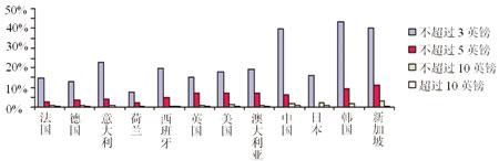 在那些少數(shù)愿意購(gòu)買(mǎi)手機(jī)電視和電影大片的被調(diào)查者中,大部分人愿意每月支付不超過(guò)3英鎊的費(fèi)用。其中,中國(guó)、韓國(guó)、新加坡的支付意愿較高,歐洲的意大利其次,其23%的被調(diào)查者也表示愿意每月支付不超過(guò)3英鎊的費(fèi)用。愿意每月支付3英鎊以上的用戶(hù)非常少,在韓國(guó)、日本、新加坡這樣的國(guó)家,也只有不到11%的人表示愿意每月支付不超過(guò)5英鎊的費(fèi)用。(見(jiàn)圖6)