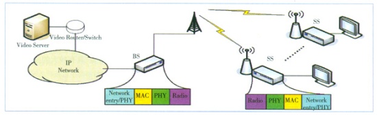 基于WiMAX的IPTV接入網(wǎng)的功能框圖如圖2所示,包括視頻服務(wù)器(Video Server)、視頻路由/交換器(Video