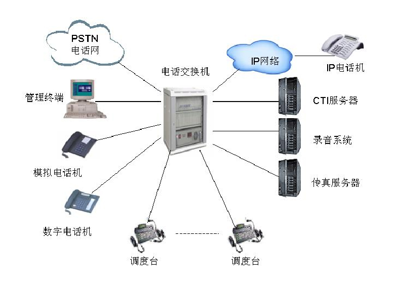 采用IP電話和程控交換機技術,依托專用網(wǎng)絡和PSTN網(wǎng)絡,利用該系統(tǒng)可即時與各專項指揮部之間組建電話會議。