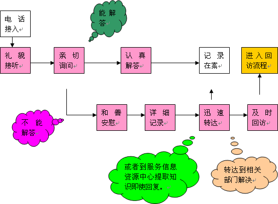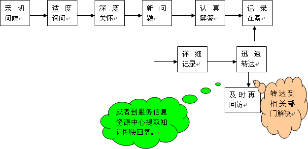 c、 客戶關(guān)系中心的客戶服務(wù)信息資源中心需要及時(shí)整理、收集、豐富客戶服務(wù)信息資源,為話務(wù)人員的咨詢解答和回訪慰問提供支持。