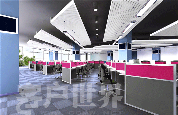 在這個環(huán)節(jié),我想和大家分享一些我們剛剛完成的設(shè)計圖片,可以更直觀的感受色彩在呼叫中心空間中的重要性。