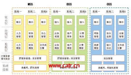 各大運營企業(yè)基本建成了較為完整的運營支撐系統(tǒng)的框架體系,功能點覆蓋了企業(yè)運營管理的各個方面,有力地支撐了從業(yè)務(wù)運營、客戶服務(wù)、市場營銷到網(wǎng)絡(luò)管理、企業(yè)信息化管理等各項工作。同時,也存在著諸如系統(tǒng)“遍地開花”、功能重疊等現(xiàn)象,這些都需要在今后的建設(shè)工作中逐步解決。