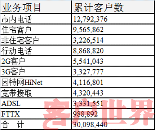 時至今日,臺灣中華電信在臺灣全區(qū)共有15個Call Center(含3個查號中心),共有3,000多位客服人員,服務本公司固網(wǎng)、行動、數(shù)據(jù)、寬帶…等客戶約3,000余萬戶。服務內容包括咨詢、訂單、帳務、障礙、營銷等作業(yè),每月平均受理及處理的話務量約1,230萬余次。