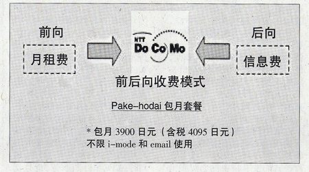 當然,移動互聯(lián)網運營不僅可以前向向用戶收費,還可以采取后向的廣告收費模式,如圖NTT DoCoMo的數(shù)據業(yè)務資費模式: