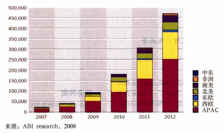 而思科近日發(fā)布的報告稱,到2013年,全球近2/3的移動互聯(lián)網(wǎng)流量將是視頻。預(yù)測指出,亞太地區(qū)在未來的4年內(nèi)移動互聯(lián)網(wǎng)流量比例有望占到所有移動互聯(lián)網(wǎng)數(shù)據(jù)流量的三分之一,年增長率為146%;僅次于拉丁美洲166%的增長率。思科預(yù)測2008年到2013年之間全球移動互聯(lián)網(wǎng)流量將增長66倍,這期間年均復(fù)合增長率為l31%。報告預(yù)計(jì),2013年每月全球移動互聯(lián)網(wǎng)流量將超過200萬兆字節(jié),相當(dāng)于2.5億份