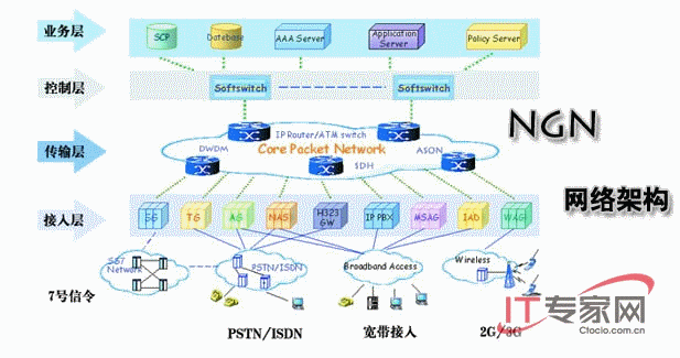 下一代網絡(NGN)是指以軟交換為代表,IMS為核心框架,能夠為公眾靈活提供大規(guī)模視訊話音數據等多種通信業(yè)務,以分組交換為業(yè)務統(tǒng)一承載平臺,傳輸層適應數據業(yè)務特征及帶寬需求,與通信運營商相關,可運營、維護、管理的通信網絡。