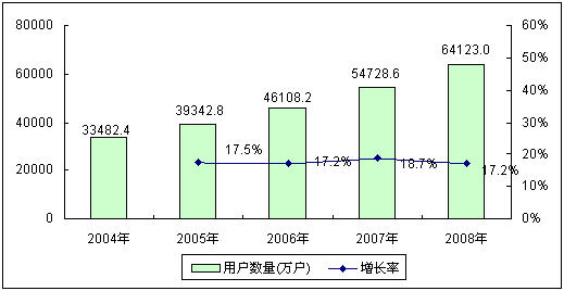 中國移動通信產(chǎn)業(yè)發(fā)展可以追溯到1987年,當(dāng)時中國確定了以TACS制式作為模擬制式蜂窩移動電話的標準,首次為中國移動通信技術(shù)產(chǎn)業(yè)化發(fā)展奠定了基礎(chǔ)。隨著通信技術(shù)的進步,數(shù)字化的GSM移動通信網(wǎng)絡(luò)制式快速取代了原有的TACS制式。進入2000年以后,伴隨中國改革開放的深入和經(jīng)濟的進一步轉(zhuǎn)型,移動通信技術(shù)得到迅猛發(fā)展,手機普及率得到迅速提高。2004~2008年,中國移動電話用戶數(shù)量每年都保持著17%以上的快速增長,截止到2008年底,中國移動電話用戶數(shù)量已經(jīng)達到6.41億戶,與2004年相比增長了近一倍。