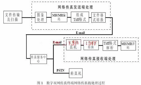實(shí)現(xiàn)完整網(wǎng)絡(luò)傳真收發(fā)的功能與步驟,可以分為網(wǎng)絡(luò)傳真發(fā)送處理及網(wǎng)絡(luò)傳真接收處理兩個(gè)部分。其中網(wǎng)絡(luò)傳真接收端的處理可以理解為網(wǎng)絡(luò)傳真發(fā)送處理的逆過(guò)程。