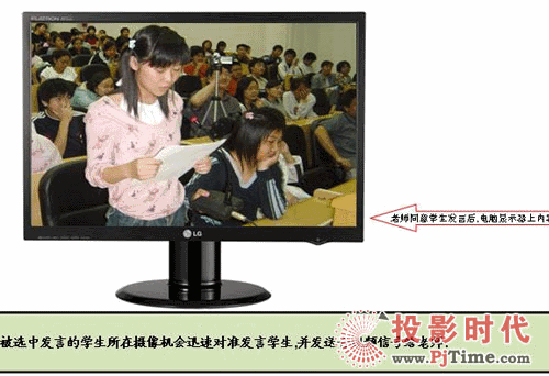 3)被選中發(fā)言的學(xué)生所在攝像機(jī)會(huì)迅速對(duì)準(zhǔn)發(fā)言學(xué)生,并發(fā)送音視頻信號(hào)給老師.