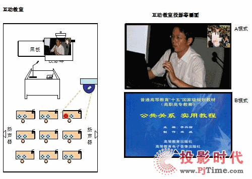 直播模式: 以單畫(huà)面全屏顯示教師或VGA畫(huà)面或本教室發(fā)言學(xué)生的圖像 如(A模式);