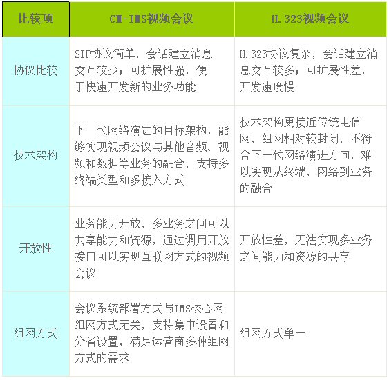 表1 CM-IMS視頻會議和傳統(tǒng)的H.323視頻會議比較