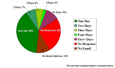 該報(bào)告進(jìn)一步總結(jié)到,60%的網(wǎng)站客戶希望更多互動(dòng)但許多電子商務(wù)企業(yè)無法回應(yīng)電子郵件且不能提供足夠的電話支持。也有很多電子商務(wù)企業(yè)提供電子郵件支持,比如說etoys,但對(duì)于如潮水般洶涌而來的電子郵件聯(lián)絡(luò)他們顯然沒有什么準(zhǔn)備以至于處理結(jié)果符合客戶預(yù)期的郵件少之又少。如果處理的好