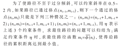 把測(cè)試模版的各個(gè)幀號(hào)n=1,…,N在一個(gè)二維直角坐標(biāo)系的橫軸上標(biāo)出,把參考模版的各幀號(hào)m=1,…,M在縱軸上標(biāo)出,通過這些表示幀號(hào)的整數(shù)坐標(biāo)畫出的橫縱線即可形成一個(gè)網(wǎng)格,網(wǎng)格中的每一個(gè)交叉點(diǎn)(n,m)表示測(cè)試模版中某一幀與訓(xùn)練模版中某一幀的交叉點(diǎn)。動(dòng)態(tài)規(guī)劃算法可以歸結(jié)為尋找一條通過此網(wǎng)格中若干格點(diǎn)的路徑,路徑通過的格點(diǎn)即為測(cè)試和參考模版中距離計(jì)算的幀號(hào)。