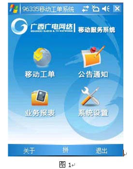 移動(dòng)工單系統(tǒng)是數(shù)字電視客戶呼叫中心平臺(tái)系統(tǒng)的延伸,它結(jié)合最新的網(wǎng)絡(luò)移動(dòng)技術(shù),實(shí)現(xiàn)數(shù)字電視服務(wù)工單分派業(yè)務(wù)的自動(dòng)流轉(zhuǎn)和實(shí)時(shí)流轉(zhuǎn),各地市維護(hù)站的服務(wù)工作人員通過(guò)智能手機(jī)終端,實(shí)時(shí)獲取工作任務(wù)、計(jì)劃安排,進(jìn)行業(yè)務(wù)處理,通過(guò)移動(dòng)網(wǎng)絡(luò)查詢客戶信息、查詢用戶產(chǎn)品訂購(gòu)資料,上報(bào)處理結(jié)果和用戶反饋信息,通過(guò)移動(dòng)網(wǎng)絡(luò)提交到管理部門,管理層能及時(shí)的掌握服務(wù)進(jìn)展情況,并能隨時(shí)做出決策和指揮,真正實(shí)現(xiàn)對(duì)用戶最快速、有效的服務(wù)需求響應(yīng),保證了服務(wù)質(zhì)量和用戶滿意度,提升了數(shù)字電視的服務(wù)水平與服務(wù)檔次。其界面如圖1所示。