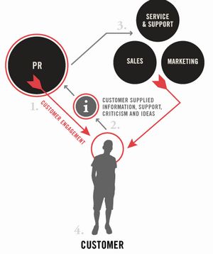 社會化CRM賦予了企業(yè)公關部門更重要的角色,通過公關部分與消費者更多的互動,從中獲取消費者的反饋信息、褒貶意見、新想法新創(chuàng)意。之后再通過銷售、市場推廣以及產品服務等措施來吸引更多目標消費群,并用公關活動來進一步推廣。