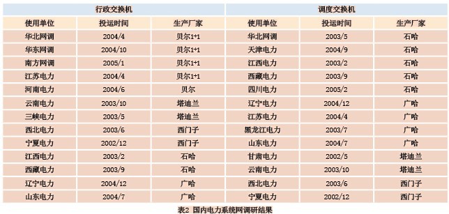 通過對目前國內電力系統(tǒng)網省一級的用戶使用交換機設備品牌進行電話調研統(tǒng)計,從整體上更能體現交換設備技術發(fā)展走向,為軟交換應用的可行性評估提供可靠的數據。表2為重點調研的匯總結果。