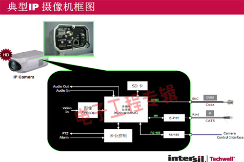 革命性的Intersil Techwell SLOCTM(Security Link over Coax)同軸電纜復(fù)合視頻傳輸解決方案是可通過(guò)一條同軸電纜同時(shí)傳輸模擬 CVBS 視頻和高清數(shù)字 IP 視頻信號(hào)的先進(jìn)調(diào)制解調(diào)器解決方案,其采用最新MODEM PHY技術(shù)的傳輸解決方案,可以基于同軸電纜同時(shí)傳輸高清IP碼流和標(biāo)清模擬實(shí)時(shí)視頻。