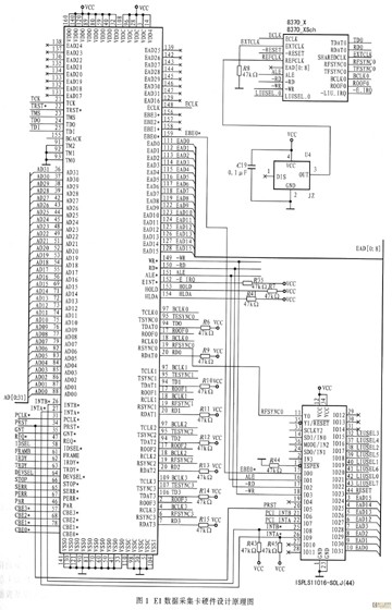 隨著電信網(wǎng)絡(luò)迅速發(fā)展,基于軟交換技術(shù)的NGN網(wǎng)絡(luò)應(yīng)運而生。在構(gòu)建中,NGN需通過信令網(wǎng)關(guān)SG與現(xiàn)有的七號信令網(wǎng)互通,但在物理上采用HDLC格式的 E1傳輸。為了維護NGN網(wǎng)絡(luò),實現(xiàn)不同采集口的多協(xié)議關(guān)聯(lián)、呼叫的合成等功能,相應(yīng)的測試儀表必須提供網(wǎng)卡和E1卡的測試接口。根據(jù)NGN網(wǎng)絡(luò)測試儀表的總體設(shè)計方案要求,數(shù)據(jù)采集卡采用PCI插槽,E1信號經(jīng)物理接口器件成幀,通過串口送給MUSYCC,完成消息重組,最后通過PCI總線將消息送至上層軟件進行協(xié)議分析處理。數(shù)據(jù)采集卡提供網(wǎng)絡(luò)接口的物理層、鏈路層功能以及PCI規(guī)范接口,可同時監(jiān)測8路E1信號。