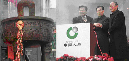 1月8日上午10:30,中國人壽大廈樓前披紅掛彩、獅舞龍騰,中國人壽保險股份有限公司接受中國人保、中國再保、中國信保禮品饋贈儀式在熱烈而隆重的氣氛中順利舉行。三家公司向我公司饋贈了包括兩只寶鼎和三只水晶花瓶在內(nèi)的珍貴禮品,中國人保的唐運祥總經(jīng)理、中國再保的戴鳳舉總經(jīng)理、中國信保的唐若昕總經(jīng)理先后發(fā)表了熱情洋溢的講話,祝賀我公司雙喜臨門:紐約、香港成功上市和喬遷新大樓,我公司總經(jīng)理王憲章代表公司接收了三家兄弟公司饋贈的珍貴禮品并致感謝辭,他祝愿四家公司將中國民族保險業(yè)更加發(fā)揚光大。公司副總經(jīng)理苗復(fù)春主持了此次捐贈儀式,出席此次饋贈儀式的還有集團(tuán)公司和股份公司總經(jīng)理室的各位領(lǐng)導(dǎo)、各部門總經(jīng)理和員工。