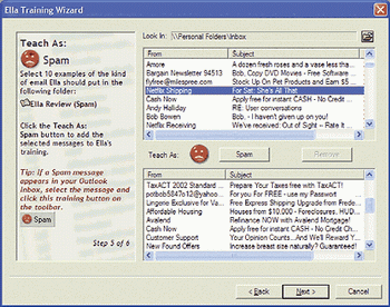 由開放領(lǐng)域軟件(Open Field Software)新開發(fā)的Ella 能分揀電子郵件,并將垃圾郵件撇在一邊。如果你渴望清理你的郵箱又舍不得放棄Outlook 的話,Ella就是你理想的選擇。大多數(shù)電郵軟件的分類都是以信件的特定部位來進行分類的,如發(fā)件人的姓名或郵件主題。而Ella的分類更加詳盡周到,分類元素有100多種,從發(fā)信人到信件內(nèi)容再到信件來源,可一一進行分類。如圖: