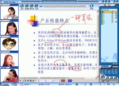 據(jù)該公司技術(shù)總監(jiān)李明先生介紹,Active Meeting2004是為了迎合寬帶運(yùn)營(yíng)而專(zhuān)門(mén)設(shè)計(jì)開(kāi)發(fā)的。首先,服務(wù)器引用"級(jí)聯(lián)"方式,通過(guò)系統(tǒng)服務(wù)器端Active Center的"平衡分流"設(shè)計(jì),使得任何單位的會(huì)議和交流能夠流暢的進(jìn)行。