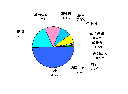 從國(guó)內(nèi)移動(dòng)IVR市場(chǎng)第一季度各SP的收入情況看,一季度收入超過(guò)千萬(wàn)的只有TOM和新浪。其中TOM平均月收入超過(guò)1000萬(wàn);新浪平均月收入在480萬(wàn)左右。從市場(chǎng)份額來(lái)看,TOM遙遙領(lǐng)先,接近50%的市場(chǎng)份額;其次是新浪,占到19%的市場(chǎng)份額。滾石移動(dòng)和博升拓是最早進(jìn)入移動(dòng)IVR市場(chǎng)的SP之一,市場(chǎng)份額分別為12.5%和9%左右;騰訊由于其特殊的用戶(hù)資源,雖然進(jìn)入移動(dòng)IVR市場(chǎng)的時(shí)間相對(duì)稍晚一點(diǎn),但業(yè)務(wù)增長(zhǎng)很快,市場(chǎng)份額在7%左右。通過(guò)對(duì)各SP移動(dòng)IVR市場(chǎng)份額的分析可以看出,目前移動(dòng)IVR業(yè)務(wù)的市場(chǎng)集中度相對(duì)較高,以上這五家SP占到總市場(chǎng)份額的97%左右。