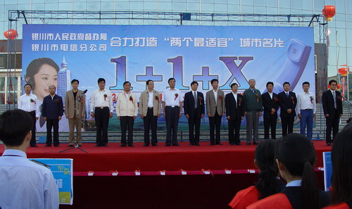 9月5日,“銀川市‘1+1+X’便民電話服務(wù)工程啟動暨便民電話服務(wù)卡首發(fā)儀式”在銀川市光明廣場隆重舉行。銀川市市長白雪山,寧夏自治區(qū)電信總公司總經(jīng)理馬林峰等出席了啟動儀式。