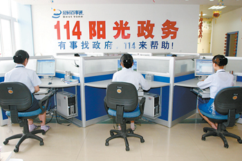 日前,安徽電信在全省啟動了114陽光政務工程:用戶通過114即可了解各級黨政機關的5000多條政務公開信息。用戶撥打114,可方便地查詢到政府職能部門的號碼、詳細辦公地址和該部門對外服務窗口的服務內(nèi)容和辦公時間;能夠了解到政府職能部門的辦事流程;電話還能在辦公時間內(nèi)直接轉(zhuǎn)接到職能部門。該工程使政府各相關部門能準確了解社情民意,幫助群眾排憂解難,極大地提高了辦事效率,推進了和諧社會建設。