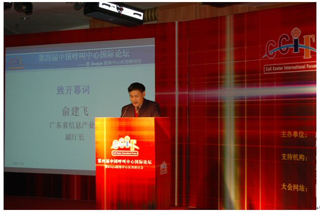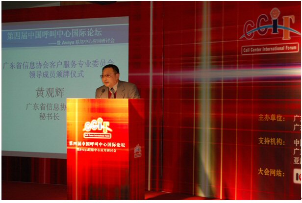 由廣東省信息協(xié)會(huì)、廣東省電子商務(wù)協(xié)會(huì)聯(lián)合主辦,廣東省信息協(xié)會(huì)客戶服務(wù)專業(yè)委員會(huì)、廣州市品派文化傳播有限公司策劃承辦,AVAYA公司總協(xié)辦的第四屆中國(guó)呼叫中心國(guó)際論壇于2007年1月23日在廣州亞洲國(guó)際大酒店隆重舉行,廣東省信息產(chǎn)業(yè)廳副廳長(zhǎng)俞建飛出席會(huì)議并致開幕詞。會(huì)上,廣東省信息協(xié)會(huì)秘書長(zhǎng)黃觀輝、AVAYA公司銷售總經(jīng)理?xiàng)畛、民生銀行電子銀行部華南運(yùn)營(yíng)中心總經(jīng)理李濤、網(wǎng)易客戶服務(wù)部總監(jiān)張?jiān)频确謩e做了主題發(fā)言。來自全國(guó)各地300多位企業(yè)管理人員參加了本次論壇。