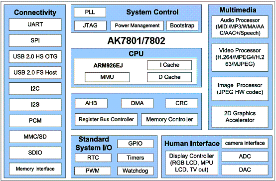 AK36系列PND方案的硬件架構(gòu)由AK36系列外接GPS模塊或芯片組組成,搭配MLC Nandflash海量存儲。軟件方面采用安凱自主研發(fā)的輕量級操作系統(tǒng)實現(xiàn)系統(tǒng)和多媒體等主要功能,內(nèi)置凱立德V3.0的導航版本。據(jù)安凱稱,該方案具有系統(tǒng)成本低、加工簡單、低功耗、平臺穩(wěn)定且開放性好、卓越的搜星性能等優(yōu)勢。