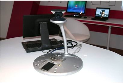 在耐心聽完介紹后,禁不住誘惑,我便親自做了現(xiàn)場體驗,原來這套系統(tǒng)所使用的360o攝像頭不同于一般的攝像頭,它集4個攝像頭以及USB設(shè)備為一體,不改變位置就能輕松實現(xiàn)360度全景覆蓋,讓所有人真正面對面交流。而投影儀的界面設(shè)定更是人性化,界面分上下兩部份,上半部分顯示的是PPT內(nèi)容和發(fā)言者,下半部分顯示的是與會人員。而它的智能語音識別系統(tǒng)更是讓人叫絕,投影儀上的發(fā)言區(qū)頭像根據(jù)發(fā)言者的聲音自動更換,而不受人聲以外的任何聲音的干擾。系統(tǒng)并附帶情景解說詞,系統(tǒng)會自動介紹與會人員所在地。在投放PPT界面旁邊有個信息欄,在上面能夠看到負責(zé)人的在線信息,并且可以選擇最合適的方式進行溝通,不但可以發(fā)即時消息和傳輸文件,還可以進行語音通話,甚至可以直接用語音連接辦公室電話,只要有網(wǎng)絡(luò),隨便哪里都可以接得到辦公室電話。