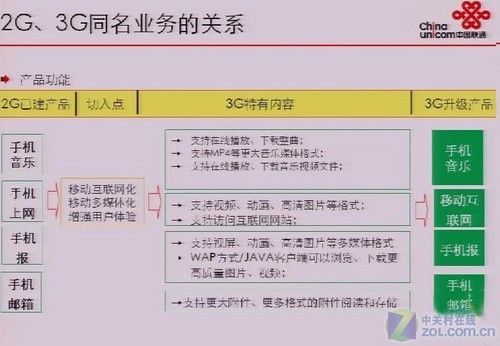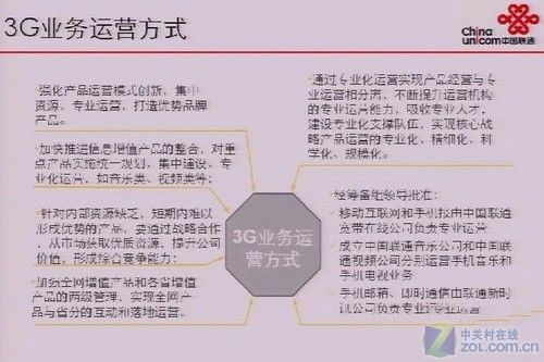 前不久,有論壇網(wǎng)友曝光了幾張聯(lián)通內(nèi)部3G培訓(xùn)所用的PPT截圖,其中不僅提到了聯(lián)通3G業(yè)務(wù)的運(yùn)營方式,2G/3G同名業(yè)務(wù)的關(guān)系,還再一次強(qiáng)調(diào)了聯(lián)通將重點(diǎn)推廣的3類九項(xiàng)主要3G業(yè)務(wù)。這和筆者前段時(shí)間為大家曝光的《官方Flash動(dòng)畫:解析聯(lián)通3G九大特色業(yè)務(wù)》所提到的聯(lián)通9大特色3G業(yè)務(wù)保持一致。