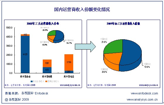 作為2008年度電信業(yè)內(nèi)最大的兩件大事,重組和3G牌照的發(fā)放不僅拉開了全業(yè)務(wù)競(jìng)爭(zhēng)的序幕,而且為國(guó)內(nèi)電信市場(chǎng)的競(jìng)爭(zhēng)注入了新的活力,一方面提供了讓電信業(yè)競(jìng)爭(zhēng)逐漸趨于平衡的發(fā)展契機(jī),從另一方面也同時(shí)帶來了大量的消費(fèi)需求。