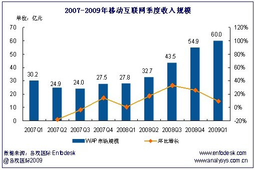 2009首季中國(guó)移動(dòng)互聯(lián)網(wǎng)收入達(dá)60億
