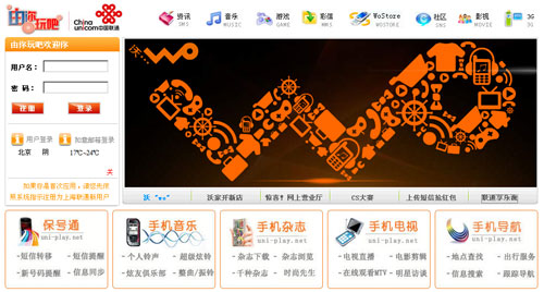 該網(wǎng)站分為資訊、音樂、游戲、彩信、WoStore、社區(qū)、影視、3G等幾類。其中,進(jìn)入WoStore類別還有通信類、信息類、娛樂類、商務(wù)類、音樂類的細(xì)分,主要提供聯(lián)通目前已有的相關(guān)增值業(yè)務(wù)。