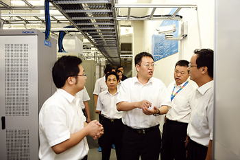 河南洛陽市12580家庭服務呼叫中心經過一段時間的試運行,目前已有200多家家庭服務業(yè)公司加入該呼叫中心,實現(xiàn)了保姆、月嫂、保潔、開鎖、家教、婚慶、送鮮花、快遞、送餐和鐘點工等十幾項服務,并將逐步擴大到50多項服務。圖為洛陽市副市長高頌革(右三)在洛陽移動公司視察指導工作。