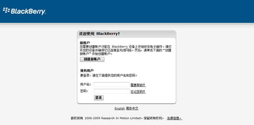中電信黑莓網(wǎng)絡(luò)服務(wù)注冊(cè)頁(yè)面曝光