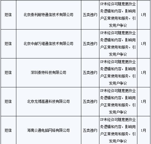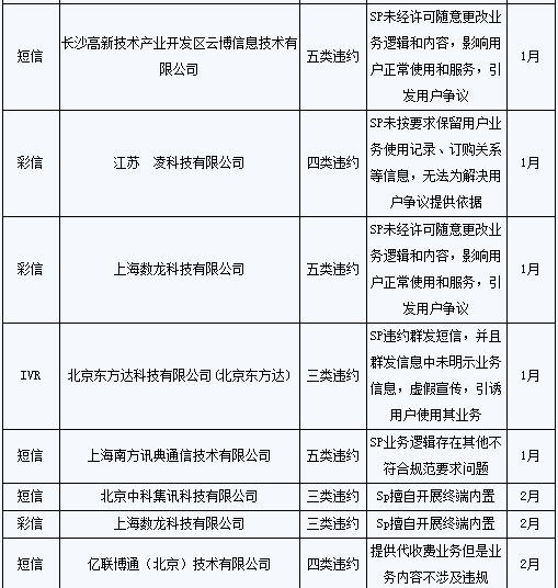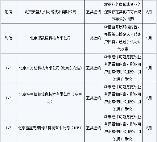同時(shí),8家SP本地業(yè)務(wù)數(shù)據(jù)2010年5月在相關(guān)系統(tǒng)進(jìn)行暫停,月底進(jìn)行全面清除;其本地業(yè)務(wù)的計(jì)費(fèi)、結(jié)算和付款工作從2010年5月開始全部終止;此外,1年內(nèi)不接受該8家SP的新接入申請(qǐng)。