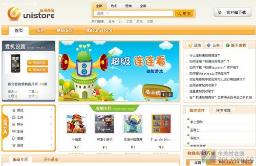 目前聯(lián)通應(yīng)用商店共有1125款應(yīng)用,其中包含445款游戲、208款閱讀、294款主題、生活軟件113款、工具軟件49款,娛樂(lè)應(yīng)用16款。目前仍處于測(cè)試階段,還沒(méi)有應(yīng)用開(kāi)發(fā)商進(jìn)行大規(guī)模的程序提交。