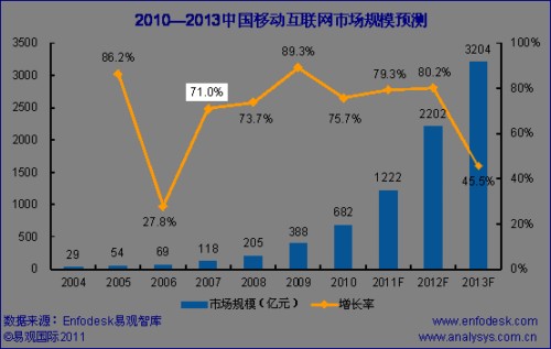 2013年中國移動(dòng)互聯(lián)網(wǎng)市場(chǎng)規(guī)模將突破3000億