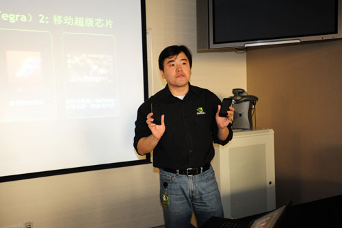 英偉達(dá)公司中國(guó)區(qū)公關(guān)經(jīng)理金洋先生展示天語和LG超級(jí)手機(jī)