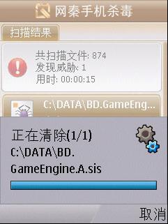 此外,在分析過(guò)程中專(zhuān)家還發(fā)現(xiàn),這款手機(jī)病毒聯(lián)網(wǎng)下載的“gameEngine.sis_7”惡意插件存在 “自我保護(hù)”機(jī)制,一旦被下載到手機(jī)中將影響其它第三方手機(jī)安全軟件的正常安裝。